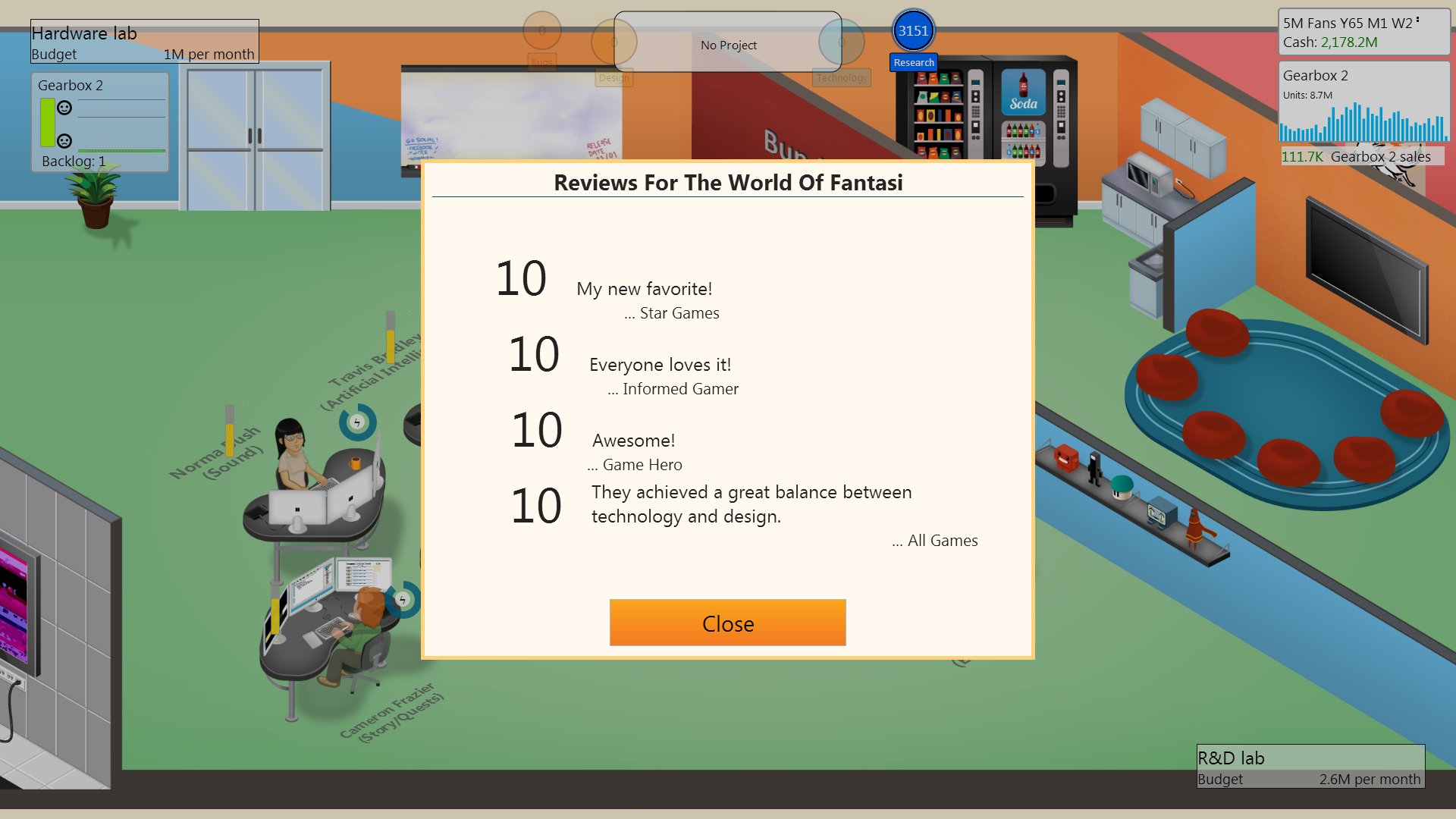 Finally Got A Perfect Score In Game Dev Tycoon Gaming from i.imgur.com The objective of the game is pretty straightforward; In game dev tycoon, there's a variety of things that can be unlocked, such as more offices, features for engines, and ways to generate income. ★ simply, just one of best casual sim games … Lastly, the bigger a game is, the more features you can fit into the development without having to worry about time, so in the very biggest ones, a fair bit of time is spent even on the categories where you have a low % of allocation, so in large and aaa games, it's not as much of a waste to cram in as many bonuses as you can even in the less. Move to new office notification shows again after 5 months if the conditions are. I do have a few complaints, the time it takes for everything. You can look up graphics tech level in the raw data page. Apr 12, 2021 · game dev tycoon lets you, as the name suggests, build your own game and release it to the world and then manage the aftermath.